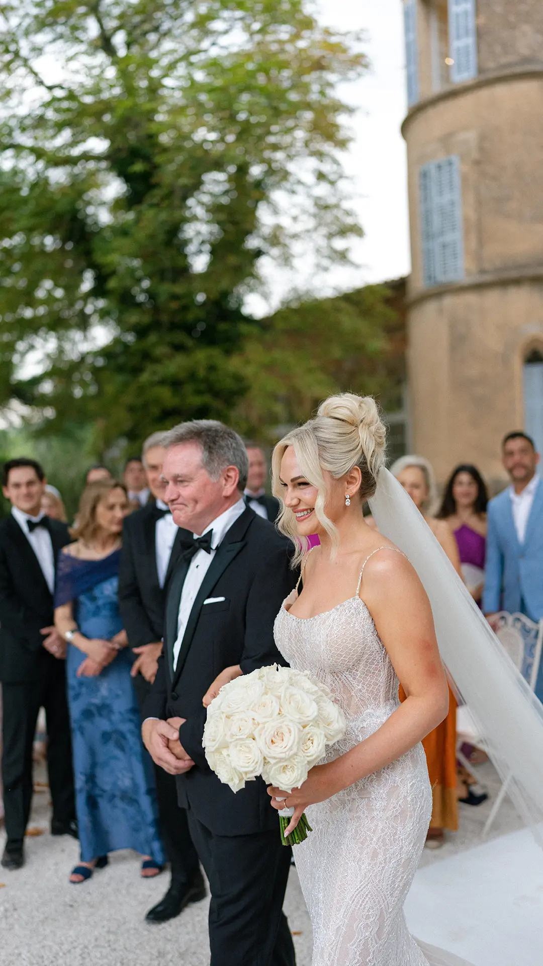 Set in the heart of the Provençal countryside, this pastel castle with its towers, grand staircase, and endless olive trees offered the perfect backdrop for a celebration straight out of a storybook. And for these two Americans in love, it was everything they dreamed of.